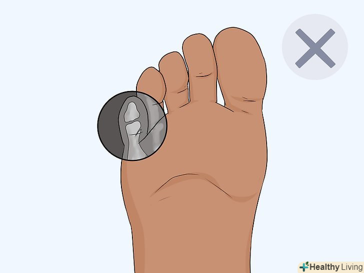 - Якщо ви підозрюєте, що у вас перелом пальця ноги, відвідайте лікаря. Перев'язка є хорошою короткостроковою мірою для більшості видів травм пальців ніг, однак при переломі потрібна медична допомога.