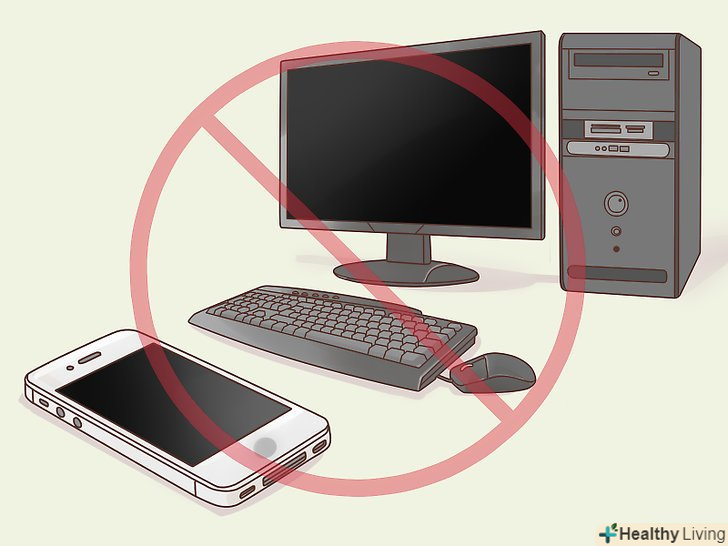 Не користуйтеся електронікою перед сном.світлове випромінювання від телефонів, комп'ютерів та інших пристроїв здатне змусити ваш організм "думати", що день все ще триває. Через це вам буде важче заснути. Постарайтеся відключати всі електронні пристрої приблизно за півгодини перед відходом до сну.[12]