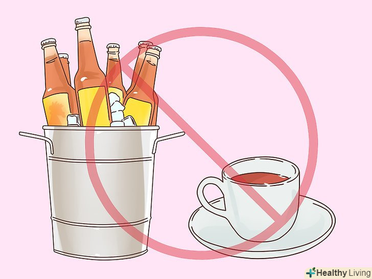 Відмовтеся від пізніх прийомів їжі, алкоголю і кофеїну. харчування безпосередньо перед сном, вживання алкоголю і напоїв з кофеїном може порушити нічний сон. Не їжте за 2-3 години до сну. Додатково обмежте вживання кофеїну після двох або трьох годин дня. Також вам слід обмежити вечірнє вживання алкоголю, так як він може призводити до неспокійного сну.[13]
