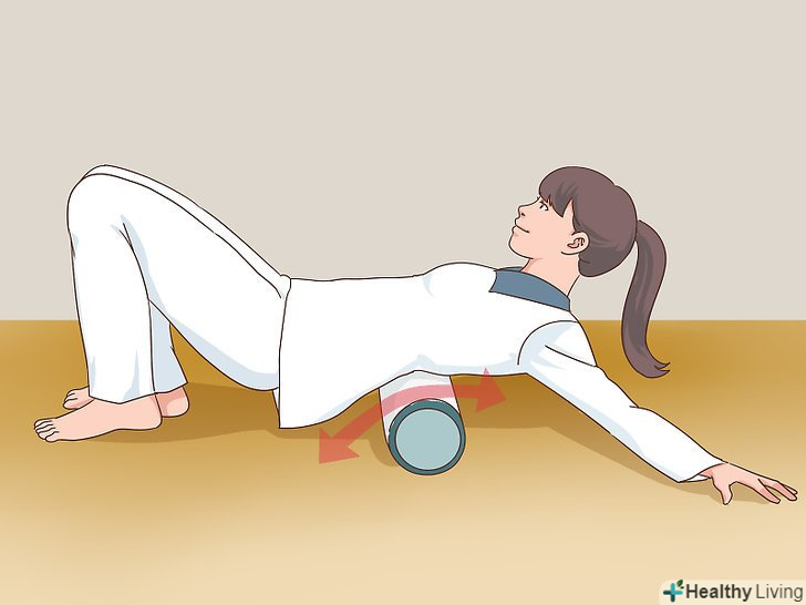 Використовуйте спеціальний валик для фітнесу , щоб виконати розтяжку спини перед сном.розтяжка спини з застосуванням валика для фітнесу теж корисна для розслаблення і підготовки до сну. Використовуйте валик безпосередньо перед тим, як відправитися спати, щоб розтягнути м'язи спини і сприяти хорошому сну.- Щоб скористатися валиком, ляжте на нього і обережно покатайтеся вгору і вниз, тим самим зняти напругу і скутість м'язів.[15]