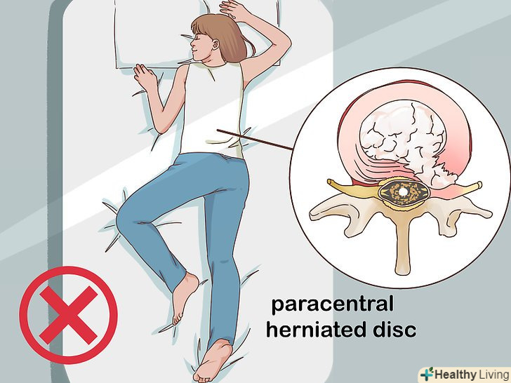 Не спіть на животі при наявності грижі міжхребцевого диска.сон на животі-найгірший варіант навіть для людини зі здоровою спиною. При цьому природний вигин хребта випрямляється, що надає додаткове навантаження на м'язи спини. Якщо ж у вас діагностована грижа міжхребцевого диска, вам ні за яких обставин не можна спати на животі.[3]