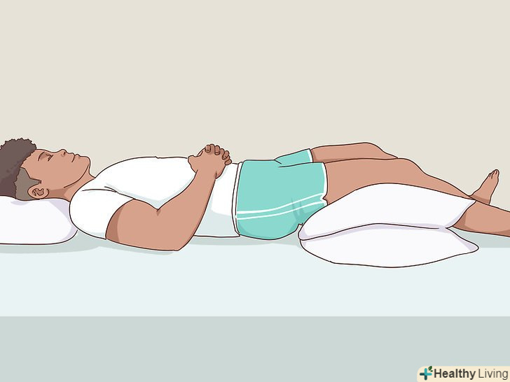 Спробуйте кілька різних поз для сну.у кожної людини з грижею міжхребцевого диска повинен бути свій власний досвід в питанні сну. Поза, яка добре підходить одній людині, необов'язково підійде комусь ще. Спробуйте кілька різних поз для сну і виберіть серед них ту, яка доставляє вам мінімальну кількість больових відчуттів.[5]- Спробуйте заснути в новій для себе позі. Якщо ж ви прокинетеся серед ночі вже в іншому положенні, постарайтеся знову повернутися в нову позу для сну.