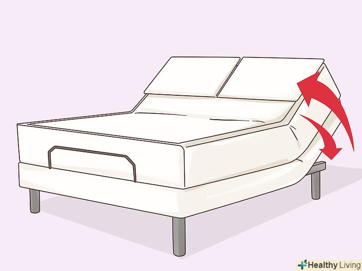 Подумайте про використання регульованого ліжка, щоб знизити навантаження на хребет.багатьом людям з міжхребцевої грижею досить боляче укладатися на горизонтальну ліжко. Якщо ви виявите, що вам занадто боляче спати в горизонтальному положенні, подумайте про використання регульованого ліжка. На регульованому ліжку можна підняти верхню частину свого тіла, що, можливо, полегшить навантаження на хребет і зменшить біль.[7]- Якщо у вас виникнуть проблеми зі звиканням до сну на регульованому ліжку, спробуйте спати в ній, принаймні, по кілька годин щоночі. У міру звикання поступово збільшуйте кількість годин сну на такому ліжку.