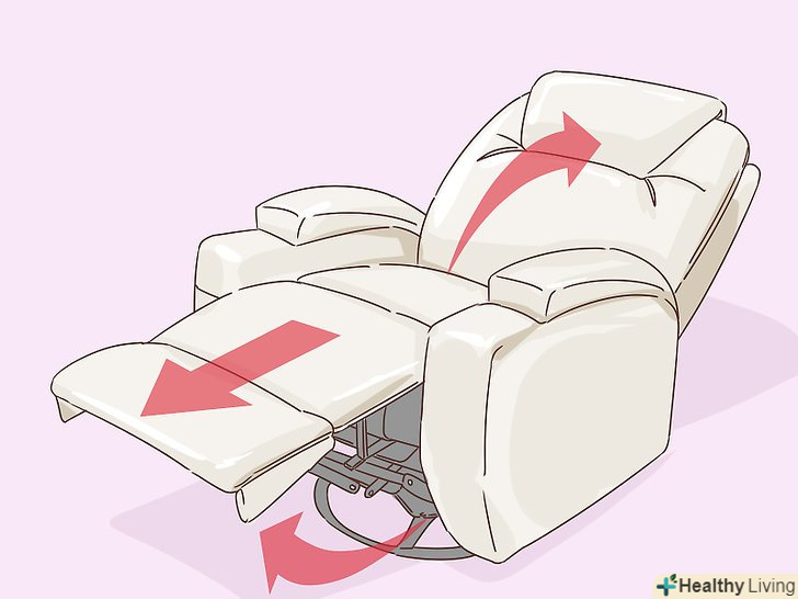Спробуйте спати у відкидному кріслі.відкидне крісло може виявитися непоганим місцем для сну, якщо ви страждаєте грижею міжхребцевого диска. Так як у відкидному кріслі тіло залишається в трохи піднятому положенні, це може дещо знизити навантаження на нижню частину хребта. Якщо інші позиції для сну здадуться вам незручними, спробуйте скористатися відкидним кріслом.[8]- Якщо ви хочете продовжувати спати в одній спальні зі своїм чоловіком або партнером, поставте в цю кімнату відкидне крісло.