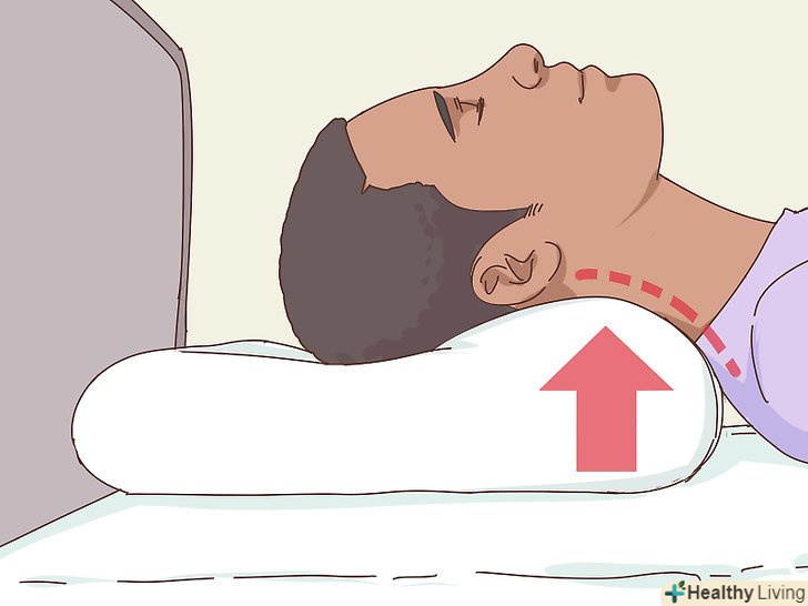 Використовуйте подушку з шийною підтримкою, щоб шия зберігала нейтральне положення. Подушки, які сконструйовані спеціальним чином, щоб підтримувати шию, відносяться до ортопедичних подушок і дозволяють шиї займати нейтральне положення. Це допомагає зменшити навантаження на інші відділи хребта в області спини.[9]