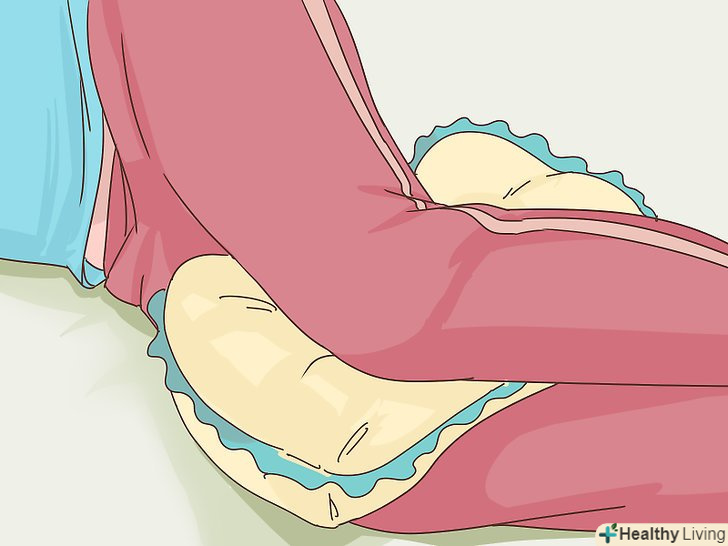 Кладіть подушку між ніг, щоб полегшити навантаження на хребет.якщо ви вибрали для сну позу на боці, спробуйте спати з подушкою між колін. Це буде комфортніше і дозволить зняти частину навантаження з хребта.[10]- Спробуйте використовувати невелику подушку з піни з ефектом пам'яті, яка буде приймати контури вашого тіла.