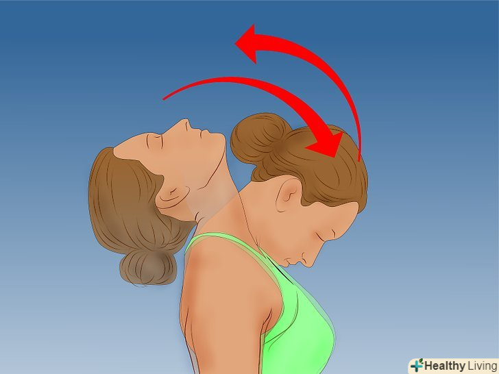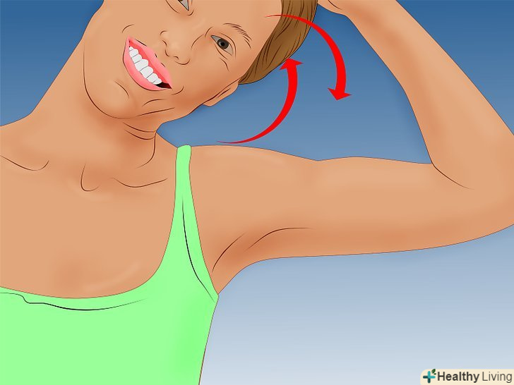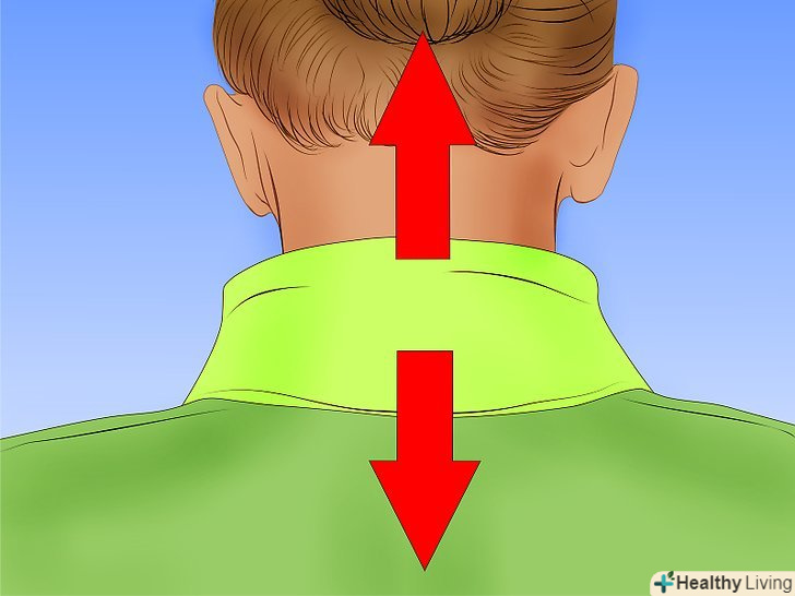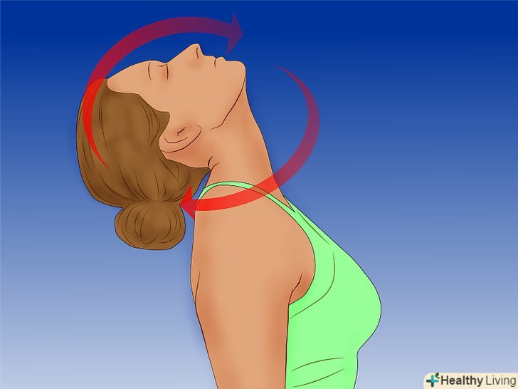 Обертання шиї.обертайте шиєю, починаючи з правого боку, постарайтеся закинути голову по максимуму в праву сторону, затримайтеся в такому положенні на кілька секунд. Поверніться у вихідне положення і повторіть те ж саме в ліву сторону. [15]- Виконуйте вправу три рази в день по 5-10 хвилин. Метою вправи є пом'якшення і зміцнення м'язів, за допомогою яких обертається голова.