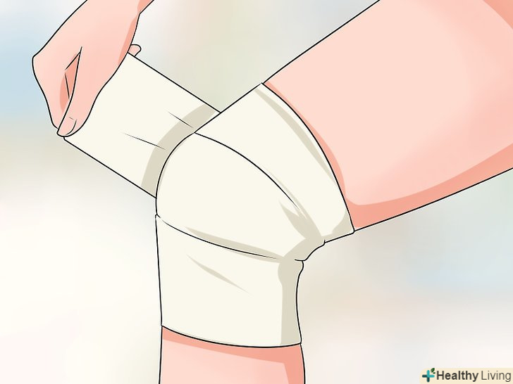 Стисніть уражене сухожилля.накладіть на пошкоджене місце щільну пов'язку або еластичний бинт, здавивши його. Це знизить опухлість і допоможе зберегти рухливість суглоба.[30]- Опухлість нерідко призводить до зниження рухливості пошкодженого суглоба і області навколо нього, а компресія перешкоджає цьому.