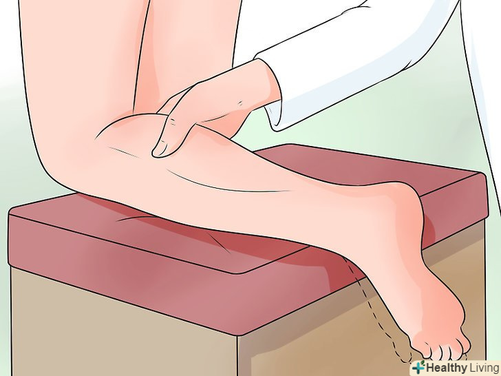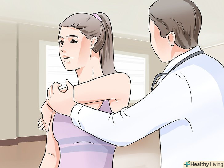 Перевірте симптоми хвороби разом з лікарем.лікар попросить вас описати випробовувані симптоми, після чого перевірить їх. Можливо, доктор діагностує тендиніт, грунтуючись на результатах загального огляду і не призначаючи проведення більш поглиблених аналізів.[40] Одним з найбільш поширених способів діагностики тендиніту є пальпація, коли лікар своїми пальцями і долонями акуратно обмацує пошкоджене місце.[41]- Лікар може перевірити опухлість сухожилля і навколишніх його тканин.[42]