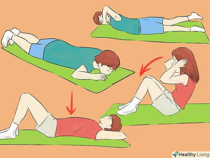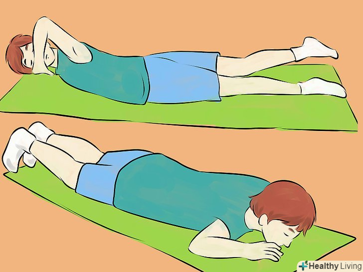 Займіть початкове положення для першої вправи:- Ляжте на живіт