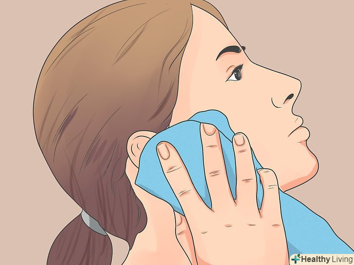 Прикладіть пакет з льодом, щоб прибрати хворобливе відчуття.[6] холодний компрес допоможе зняти запалення і біль, звужуючи кровоносні судини навколо СНЩС. Використовуйте міхур з льодом, візьміть поліетиленовий пакет і насипте в нього кубики льоду або просто покладіть рушник в морозилку, а потім прикладіть його до щелепи і обличчя. Прикладайте холодний компрес на 10 хвилин, по п'ять разів на день.- Не забувайте замотувати пакети з льодом в рушник, перш ніж прикласти їх до шкіри. Прямий контакт шкіри з льодом або пакетом з льодом може викликати обмороження.