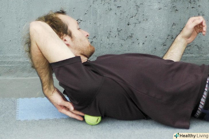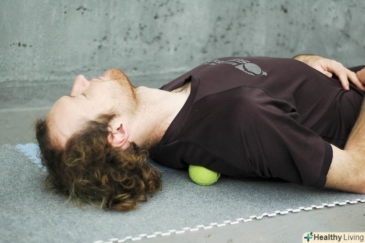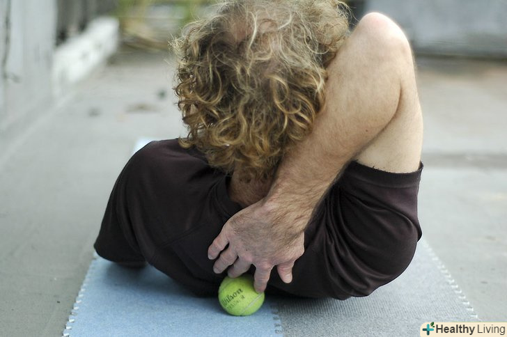 Розташуйте м'яч для тенісу прямо під вузлом і ляжте на нього.коли вага вашого тіла опуститься на нього, ви можете відчути деякий тиск.