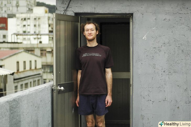 Знайдіть відкритий дверний проріз.Встаньте так, щоб Ваше праве плече стосувалося правого боку дверей.