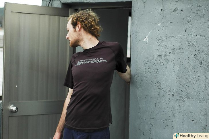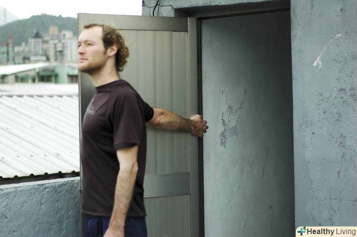 Потягніться правою рукою назад і схопіть пальцями внутрішній край дверей.тримайте вашу руку прямо і на рівні плеча.