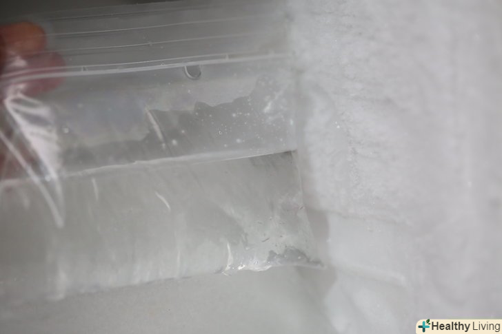 Покладіть пакет у морозильну камеру.заморожуйте принаймні 3 години, перш ніж використовувати. Примітка: так як спирт підтримує рідкий стан води, пакет насправді не замерзне, але вміст стане холодним і приємним.