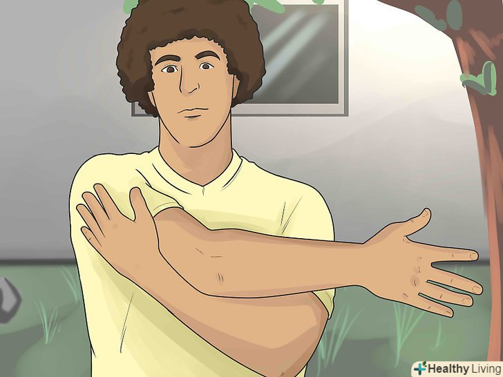 Спробуйте злегка розминати плече.якщо біль не дуже сильна і руху не супроводжуються гострою, пронизливою або прострілює болем, то у вас, швидше за все, розтягнення м'язів. При помірному розтягуванні м'язів добре допомагає легка розминка, що сприяє зняттю м'язової напруги, кращому кровообігу і відновленню гнучкості м'язів.[5] робіть розтяжку м'язів (без різких рухів) по 30 секунд три рази на день, і відчуття дискомфорту пройде.- Спроба оберегти хворе плече від будь-якого руху і фіксує перев'язка можуть привести до адгезивного капсуліту, званому також «замороженим плечем», який характеризується утворенням рубцевої тканини, хронічної ригідністю і зниженим діапазоном рухів.