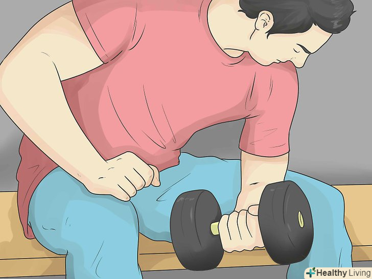 Спробуйте силові вправи.якщо біль в плечі викликана перенапруженням (особливо на роботі), силові вправи допоможуть її усунути, якщо, звичайно, виконувати їх правильно і обережно.[6] як тільки біль почне стихати, займіться менш інтенсивними вправами по розтягуванню м'язів плеча. Сильні м'язи (дельтоподібні, м'язи плечового пояса) здатні краще впоратися з напругою, що призводить до болю в плечі, тому тримайте їх в тонусі, щоб знизити ймовірність того, що біль повернеться.- Проконсультуйтеся з особистим тренером або фізіотерапевтом, щоб переконатися в тому, що ви правильно виконуєте вправи.