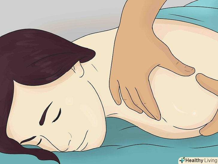 Запишіться на масаж плеча. розтягнення м'язів відбувається при занадто великій деформації і розриві окремих м'язових волокон, що призводить до болів, запалення і певної захисної фіксації (спазму м'язів, що перешкоджає подальшому пошкодженню). Глибокий масаж тканин допоможе при слабкому і помірному розтягуванні, оскільки він дозволяє зняти м'язовий спазм, протидіє запаленню і сприяє розслабленню м'язів.[8] почніть з 30-хвилинного масажу, зосередившись на хворому плечі, підставі шиї і верхній частині спини. Попросіть масажиста збільшувати інтенсивність масажу до тих пір, поки ви не почнете морщитися від болю.- Відразу після масажу завжди випивайте велику кількість води, щоб полегшити виведення зі свого організму продуктів запальних процесів і молочної кислоти. В іншому випадку ви можете відчути головний біль і легку нудоту.