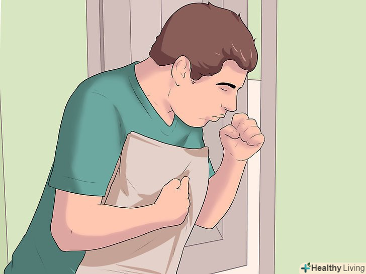 При необхідності відкашлюйтеся.стримування кашлю може призвести до легеневої інфекції. Хоча при переломі ребер кашель може викликати біль, він все ж необхідний.[16]- Під час кашлю притискайте до грудей ковдру або подушку, щоб трохи полегшити біль.