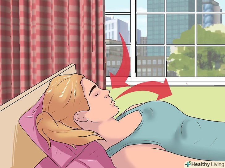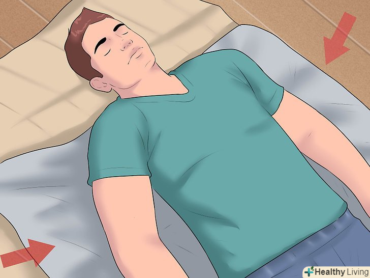 Виберіть найбільш зручну позу для сну.можливо, найзручніше вам буде спати на спині або на боці. При переломі ребер годяться обидві ці пози. Крім того, якщо ви будете лежати на спині або на боці, то вам буде легше дихати.[1] спробуйте спати в різних позах і виберіть з них найбільш зручну.- спробуйте спати на пошкодженому боці. При переломі ребер лише з одного боку деякі лікарі рекомендують спати на тому боці, де зламані ребра. Це дозволяє обмежити рух пошкоджених ребер і глибше дихати цілою стороною грудної клітини. Однак не спіть на пошкодженому боці, якщо це викликає біль.