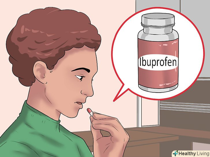 Спробуйте приймати безрецептурні болезаспокійливі засоби.можна приймати такі відпускаються без рецепта препарати, як ібупрофен, напроксен або парацетамол.[8] якщо у вас немає рецепта для придбання анальгетиків, спробуйте приймати відпускаються без рецепта препарати. Порадьтеся зі своїм лікарем щодо того, які препарати і в якій кількості слід приймати. Не перевищуйте рекомендоване дозування.[9]- Якщо у вас є або були серцеві захворювання, високий кров'яний тиск, хвороба нирок або печінки, виразка шлунка або внутрішні кровотечі, дізнайтеся у лікаря, чи можна вам приймати будь-яке з цих ліків.