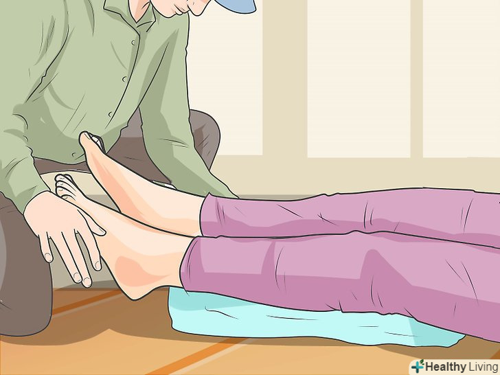 - Постарайтеся, щоб потерпілому було зручно і тепло. Підкладіть під пошкоджену область ковдру, подушку або одяг. Розмовляйте з потерпілим, щоб відвернути його від болю.[21]
