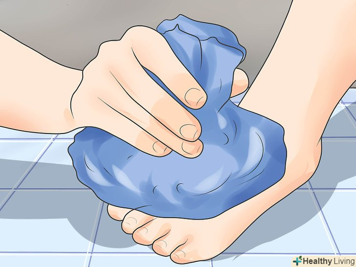 Прикладіть лід, щоб знизити набряк.посуньте одяг з місця можливого перелому і прикладіть до нього лід, щоб зменшити набряк. Таким чином ви зменшите біль і полегшите подальші дії лікаря. Не прикладайте лід безпосередньо до шкіри. Загорніть пакетик з льодом в рушник або іншу тканину.[22]- Замість льоду можна використовувати що-небудь холодне, наприклад пакет заморожених овочів або фруктів з морозилки.