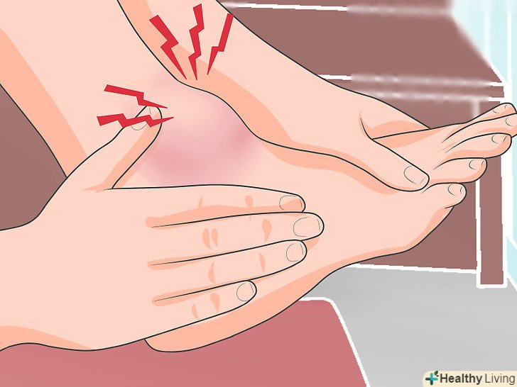 Зверніть увагу на чутливість травмованої ділянки.нерідко про переломі можна судити по надмірної чутливості і хворобливості пошкодженої області в порівнянні з оточуючими ділянками тіла. Іншими словами, при натисканні на область перелому потерпілий відчуває різкий біль. Така підвищена чутливість певного місця може свідчити про перелом кістки.[8]- Загальний біль при пальпації (обережному натисканні або поплескуванні) на ділянці шириною більше трьох пальців більш характерна для пошкоджень зв'язок, сухожиль та інших м'яких тканин.