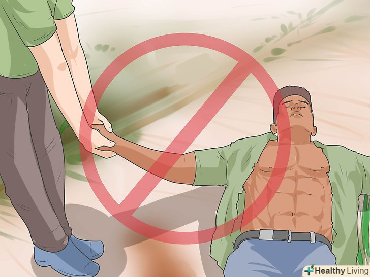 Згідно з загальним правилом, не слід переміщати потерпілого.це можна робити лише в тому випадку, якщо йому загрожує безпосередня небезпека. Не намагайтеся виправити кістки або перемістити потерпілого, якщо він не може рухатися самостійно, так як це може привести до ще бПрольшім пошкоджень.[10]- Не рухайте людину з переломом в області таза. Переломи в цій області можуть викликати рясне внутрішня кровотеча в тазову порожнину. Негайно викличте швидку допомогу і чекайте її прибуття. Однак якщо потерпілого з таким переломом вкрай необхідно перемістити до прибуття медичної допомоги, то помістіть між Його ніг скручений одяг або подушку і закріпіть ноги в такому положенні. Після цього перекотіть потерпілого на жорсткі носилки таким чином, щоб ноги залишалися разом і рухалися як одне ціле. Перекочуйте потерпілого так, щоб його плечі, таз і ступні знаходилися на одній прямій лінії; одночасно друга людина повинна підсунути носилки під таз. Необхідно, щоб носилки доходили до середини спини і колін потерпілого.[11]