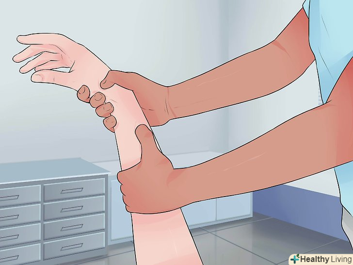 Оцініть симптоми, які ви відчуваєте.вони можуть включати в себе біль у зап'ясті, синяк в області зап'ястя, набряк зап'ястя, деформацію долоні або зап'ястя, оніміння або поколювання в пальцях. Можлива також блідість кінчиків пальців, проте вона зазвичай виникає в результаті ускладнень.- У разі блідості або обмеженої рухливості пальців при підозрі на перелом необхідно звернутися до лікаря.