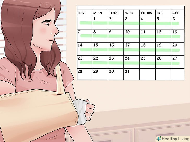 Носіть гіпс протягом необхідного часу.більшості пацієнтів потрібно носити гіпс 4-6 тижнів, в залежності від тяжкості травми і швидкості її загоєння. Лікар дасть вам рекомендації щодо того, як діяти в той час, поки ви будете носити гіпс, щоб прискорити загоєння травми. Основні правила наведені в даному розділі.
