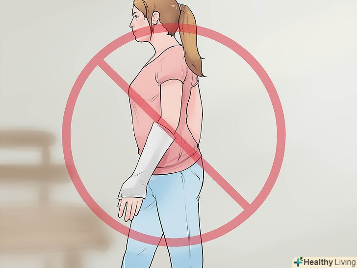 Не робіть того, що може нашкодити зап'ястя.намагайтеся якомога менше ворушити пошкодженим зап'ястям. Це означає, що слід уникати дій, при яких вам доведеться використовувати зап'ясті. Уникайте також ситуацій, в яких хто-небудь може зачепити ваше пошкоджене зап'ястя.- В якості додаткового захисту завжди надягайте підтримуючу пов'язку, коли виходите з дому. Перев'язь не дасть руці рухатися під час ходьби і покаже оточуючим, що ви отримали травму, і вони будуть вести себе обережно, щоб не зіткнутися з вами.