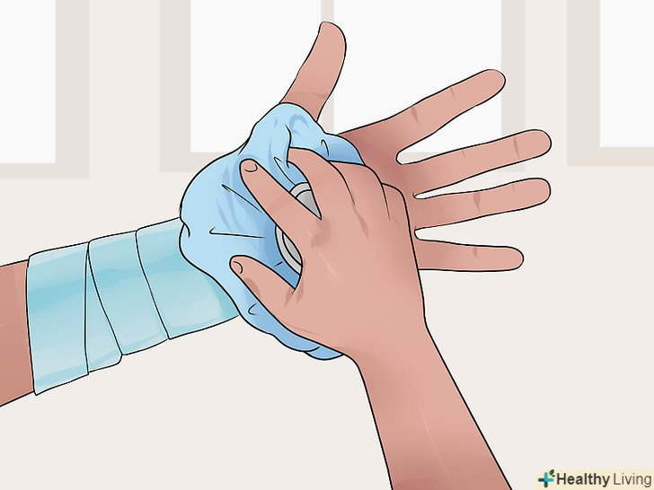 Прикладайте до зап'ястя лід.охолоджуйте зап'ястя за допомогою гіпотермічного або наповненого льодом пакета. Прикладайте пакет до зап'ястя в тому місці, де воно зламано. Холод допоможе зняти набряк і запобігти його в подальшому.- Не прикладайте лід безпосередньо до шкіри. Обертайте зап'ясті, щоб не пошкодити шкіру.