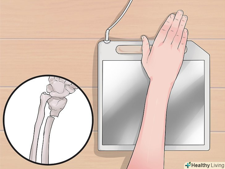 Зробіть рентгенівський знімок зап'ястя.коли ви потрапите до лікаря, він призначить вам рентгенівський знімок зап'ястя, щоб з'ясувати, наскільки серйозний перелом. Це найкращий спосіб побачити перелом кістки і визначити оптимальний спосіб лікування.