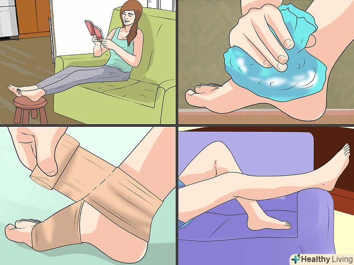- Підняття. Сядьте або ляжте і підніміть травмовану стопу. Для того щоб зняти набряк, травмовану стопу необхідно тримати вище рівня серця.[7]