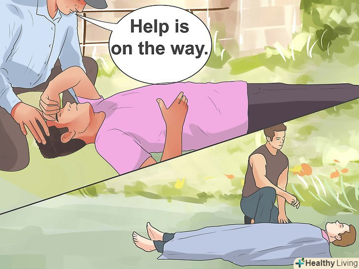 Спробуйте заспокоїти потерпілого.у разі сильного перелому через травму (наприклад, автомобільної аварії) або падіння, потерпілий досить часто впадає в стан шоку, яке здатне відключити здатність організму до відновлення. Дуже важливо, щоб ви могли заспокоїти потерпілого до тих пір, поки не прибуде допомога або поки ви не доставите його до найближчої лікарні.- Говоріть заспокійливим голосом і запевніть потерпілого, що ви тут, щоб допомогти йому/їй і що ви його/її не покинете. Скажіть, що допомога скоро буде або що ви самі відвезете його / її в лікарню.