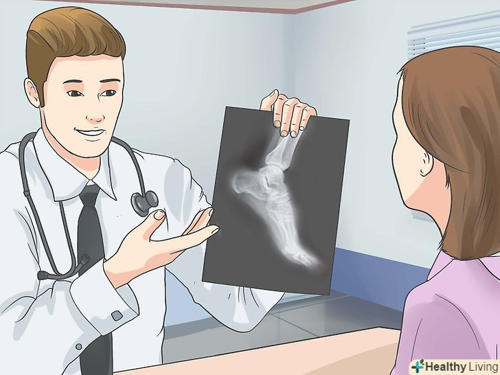 Зверніться до особистого лікаря.як тільки набряк і біль вщухнуть, запишіться на прийом до лікаря.- Лікар призначить кілька рентген-знімків стопи, щоб підтвердити передбачуваний вами діагноз.