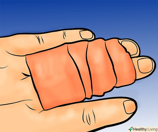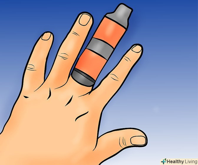 - Накладіть шину. Використовуйте жорсткий предмет, такий як ручка, щоб зробити тимчасову шину. Помістіть предмет уздовж пальця і оберніть стрічкою палець і предмет.
