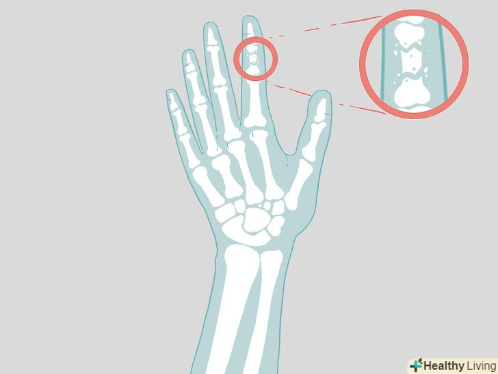 Дізнайтеся щодо візуальних методів.якщо лікар не зможе визначити при зовнішньому огляді, зламаний у вас палець, він може призначити будь-якої візуальний метод. Це може бути рентгенографія, комп'ютерна томографія або магнітно-резонансна томографія (МРТ).- Часто спочатку роблять рентгенівський знімок, щоб встановити, чи зламана кістка. При цьому ваш палець помістять між джерелом рентгенівського випромінювання і фотоплівкою або іншим реєструючим пристроєм і просвітлять малою дозою рентгенівського випромінювання, щоб отримати зображення. Ця безболісна процедура займає кілька хвилин.[8]