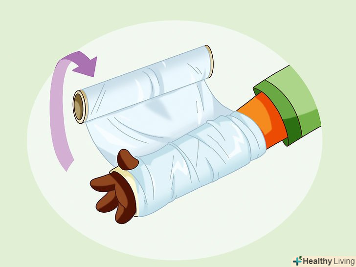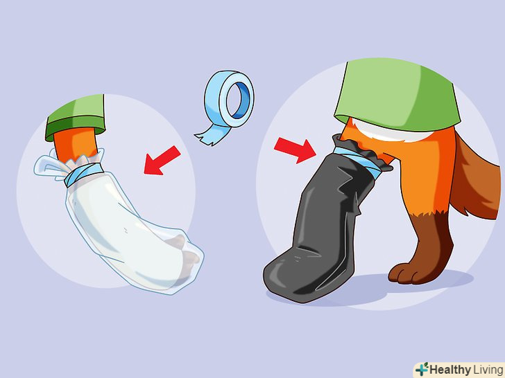 Використовуйте поліетиленові пакети.якщо у вас немає чохла для гіпсу, можна використовувати підручні предмети. Герметичні поліетиленові пакети допоможуть прикрити гіпс і захистять його від води.[2]- Підійдуть звичайні поліетиленові пакети для продуктів або сміття. Натягніть пакет на гіпс і закріпіть його за допомогою гумки або клейкої стрічки. Гумки менше тиснуть на шкіру, і після прийняття душу пакет можна буде використовувати повторно.