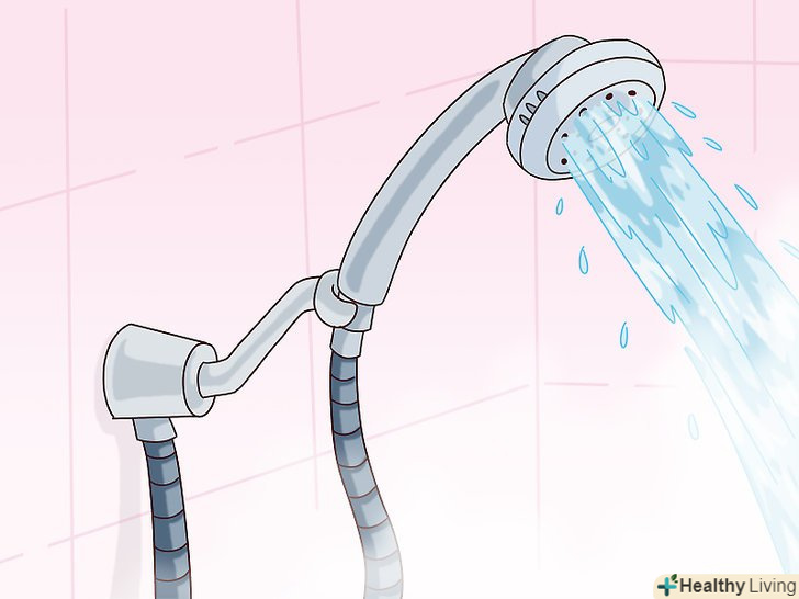 Використовуйте душовий шланг.з його допомогою вам буде набагато зручніше митися сидячи. Ви зможете направляти воду на окремі ділянки тіла і тримати її в стороні від гіпсової пов'язки.[14]- Якщо у вас в душі немає шланга, а тільки нерухомо закріплена лійка, спробуйте помитися за допомогою мочалки. При цьому будьте обережні, щоб вода не потрапила на гіпс. Перед душем обов'язково оберніть гіпс захисною плівкою.