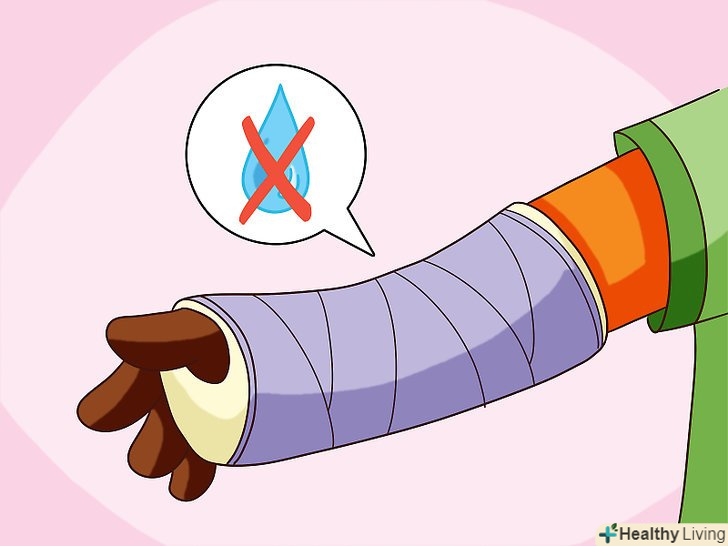 Будьте обережні, навіть якщо у вас гіпс зі скловолокна.гіпсові пов'язки зі скловолокна більш стійкі до впливу води, і якщо на них потрапить вода, її легко можна витерти. Проте, вода все ж може потрапити і під гіпс зі скловолокна, що підвищує ризик інфекції. Навіть якщо у вас гіпс зі скловолокна, краще зателефонувати лікаря в тому випадку, якщо пов'язка намокне.[19]