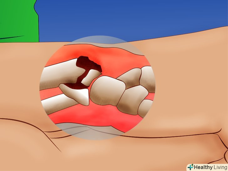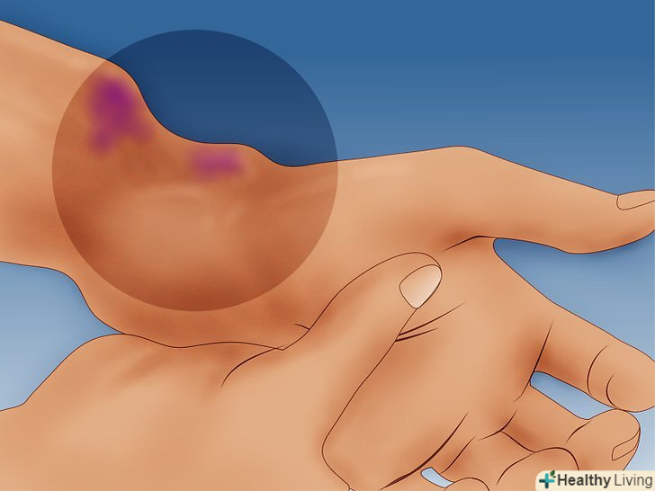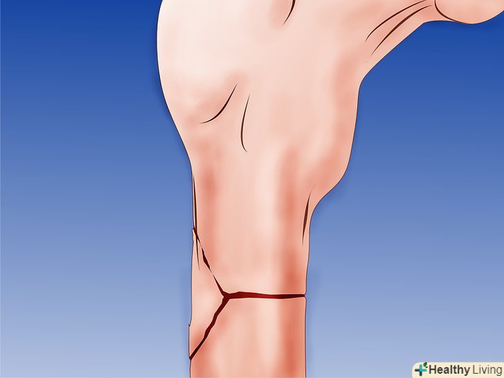 Зверніть увагу на чутливість, поколювання, набряк, синці і можливу кровотечу.набряк всіх прилеглих тканин трапляється в результаті пошкодження кров'яних судин і витікання крові по всій пошкодженої області. Оскільки це фактично означає накопичення рідини під поверхнею шкіри, пошкоджена область набрякає і починає хворіти, коли до неї торкаються.- Скупчення крові в тканинах можна помітити зовні в якості синців. Як правило, кровотеча можна очікувати тільки в тому випадку, якщо у вас відкритий перелом, тобто є частина зламаної кістки прорвала шкіру і виступає назовні.
