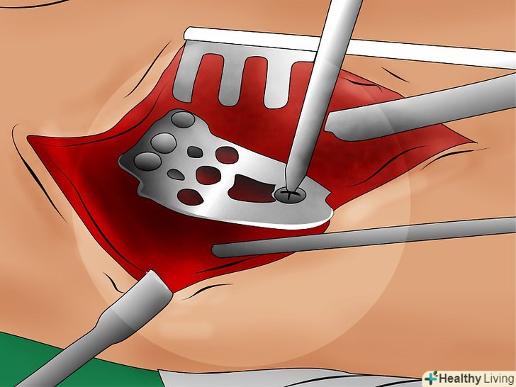 Знайте, що слід очікувати під час операції.при хірургічному втручанні для повернення зламаних кісток в їх нормальне положення використовуються методи тракції, тобто кістки фізично пересуваються в їх початкове положення. Операційна стабілізація зазвичай потрібно, щоб переконатися, що всі фрагменти кістки переміщені на свої правильні місця. Для найкращого результату лікування може знадобитися фіксація прилеглих до кістки суглобів в залежності від стану перелому.- Пошкоджені кістки зазвичай закріплюються на одному місці гвинтами і пластинами.