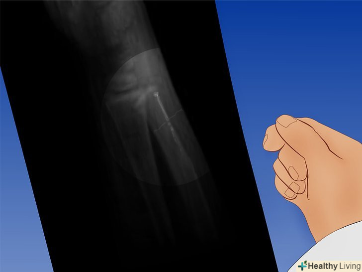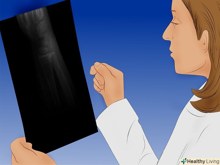 Зробіть рентген.це дуже необхідний і важливий метод діагностики переломів кісток. Рентген може виявити різні види переломів, а також будь-які сторонні тіла, які можуть перебувати в тканинах навколо перелому, і визначити, чи потрібно хірургічне втручання. Однак рентген не може виявити стан уражених тканин навколо перелому, включаючи м'язи і зв'язки.- Якщо ви вагітні, цей метод не підходить для вас через вплив радіації. Ваш лікар може порадити рентген тільки в самих особливих випадках.