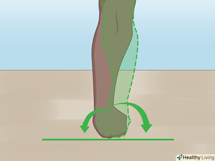 Розвивайте гнучкість зап'ясть.м'язи і сухожилля в кистях рук і передпліччях приводять в рух зап'ястя і суглоби пальців. Постійне виконання вправ на гнучкість зап'ясть допомагає запобігти болю при віджиманнях. Виконуйте ці вправи по черзі на обох зап'ястях.[13]- Згорніть в трубочку рушник, покладіть його на край столу для пом'якшення, а потім покладіть на стіл обидва передпліччя так, щоб кисті звисали з краю столу. Повільно загніть кисть вгору, поки не відчуєте розтягування сухожиль, затримайтеся на 5-10 секунд і поверніться у вихідне положення. Виконайте 10 повторень, потім переверніть кисть долонею вгору і зробіть ще 10 повторень.