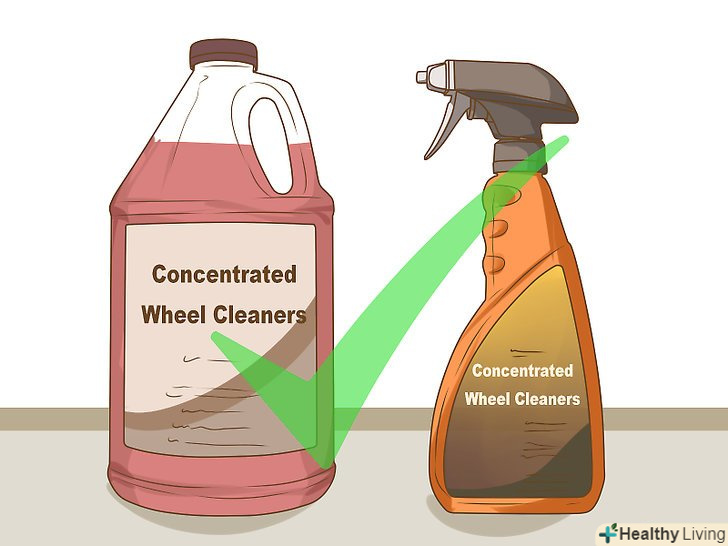 Купуйте відповідний Очищувач для колісних дисків.після того, як ви визначите тип коліс на авто, купіть відповідний очищувач. Деякі очищувачі універсальні і підходять для будь-якого типу коліс, тоді як інші годяться лише для певного типу.[2]- Хромовані колеса, як правило, найкраще очищаються спеціальним засобом для хромованих деталей.