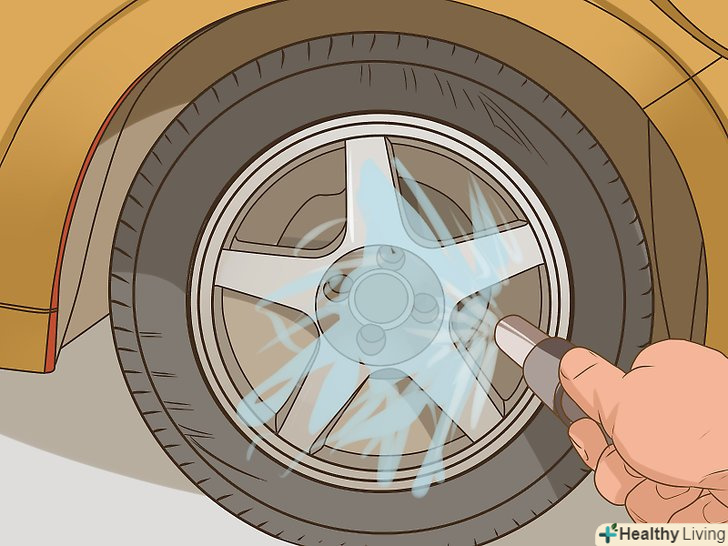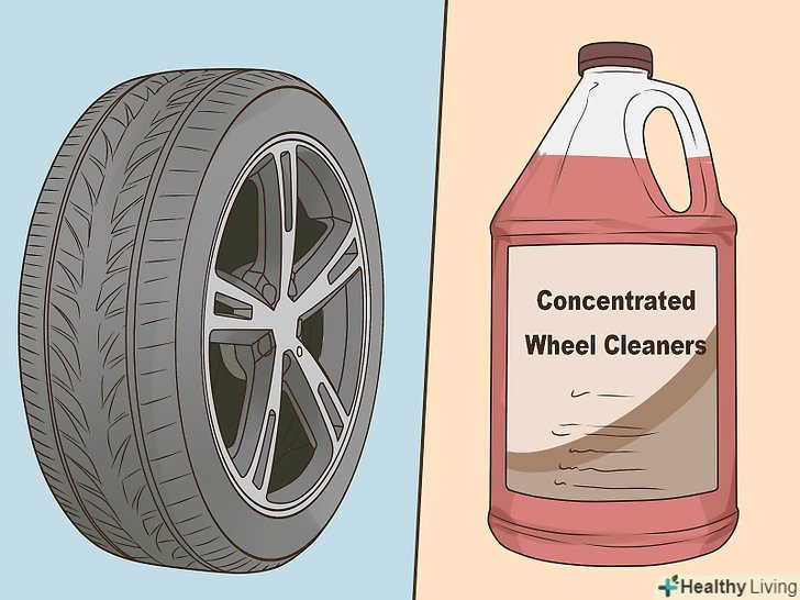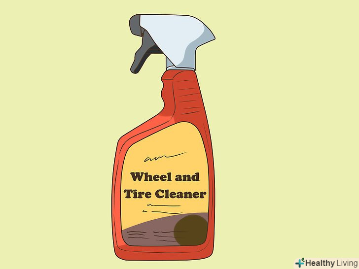 Задумайтеся над покупкою очищувача коліс і шин.деякі очищувачі підходять для очищення не тільки коліс, але і шин. Так, так можна заощадити час, але для кращого результату краще використовувати спеціалізовані засоби.[3]- Очищувач коліс і шин видалить бруд з коліс і поверне блиск вашим шинам.