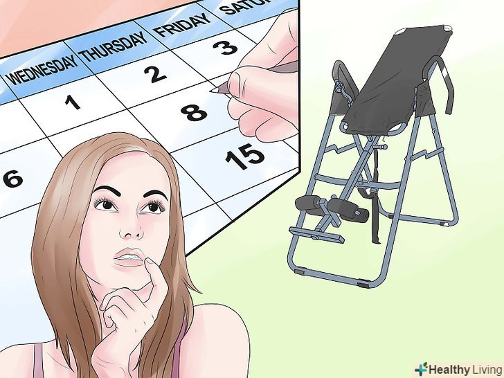 Використовуйте перевертається стіл три рази на день або в міру збільшення інтенсивності болю.перевертається стіл дасть тільки недовге полегшення, тому вам необхідно робити ці вправи частіше. Використовуйте перевертається стіл три рази на день або в міру збільшення інтенсивності болю.перевертається стіл дасть тільки недовге полегшення, тому вам необхідно робити ці вправи частіше.- Ви не зобов'язані робити повний нахил в 90 градусів. Багато людей не перевертаються більш ніж на 60 градусів, а інші і не перевищують 30, і все одно відчувають результат.