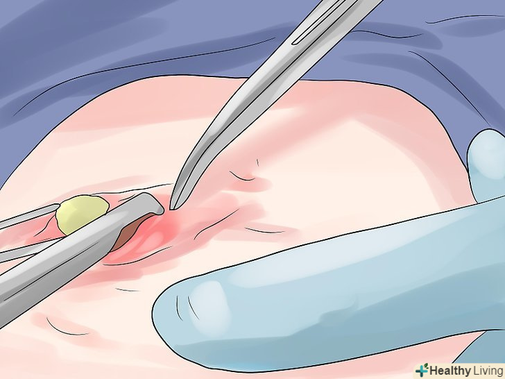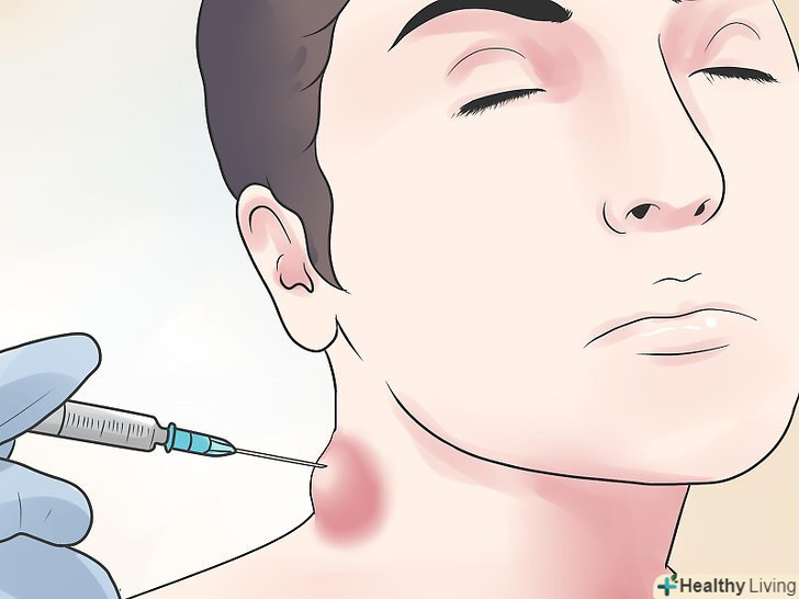 Розгляньте викачування.це коли рідина з кісти витягують за допомогою голки. Часто це супроводжується ін'єкцією кристалічних глюкокортикоїдів (стероїдів), які допомагають зменшити запалення. Більшість пацієнтів отримують полегшення симптомів шляхом аспірації, при тому, що повторення потрібно приблизно чверті пацієнтів. Ця процедура може повторюватися кілька разів.- Як правило, для зливу рідини необхідний шприц на 10-20 мл з великим розміром отвору голки (14-16 калібру), так як синовіальна рідина щільна і тому її не так просто видалити, як більш рідкі субстанції, такі як кров.[10] голка повинна бути вставлена в центр кісти. Ця процедура може бути виконана під місцевою анестезією в клінічних умовах або в кабінеті лікаря.